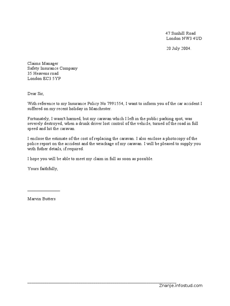 Poslovno Pismo Na Engleskom Primer Pdf Land Transport Transport