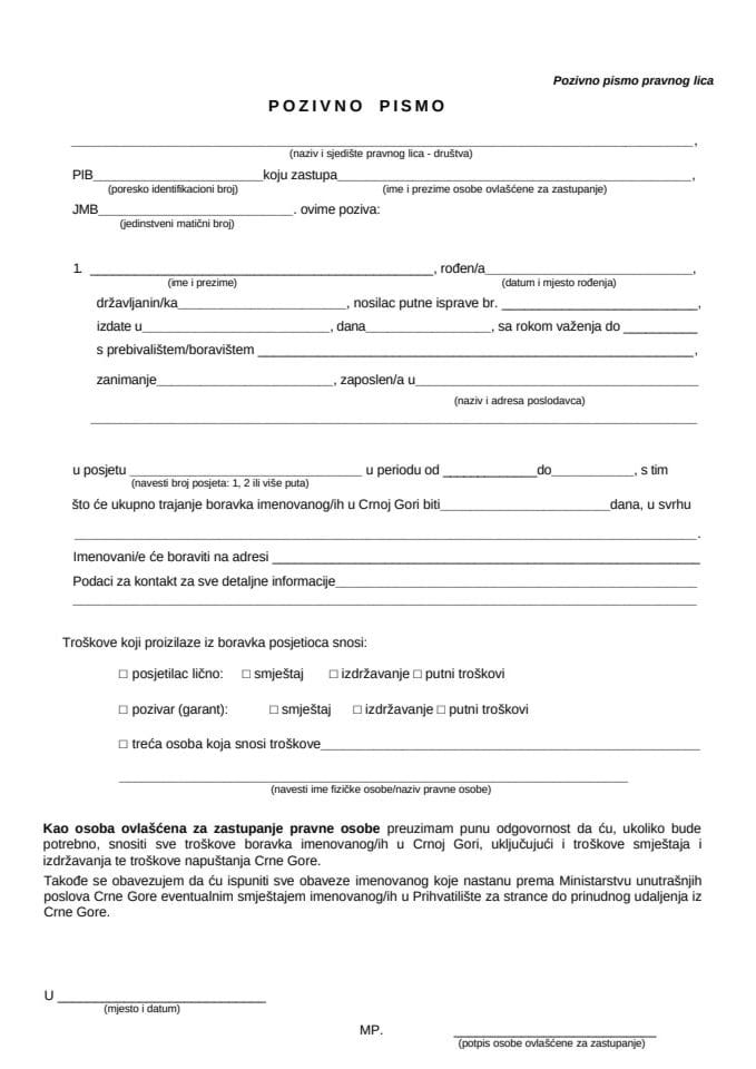 2 Kada je izdavatelj pozivnog pisma fizika osoba uz zahtjev č za ovjeru pozivnog pisma izdavatelj pozivnog pisma dužan je. Srbija Da bi strani državljanin došao u Srbiju ako Srbija ima vizni režim prema njegovoj državi potrebna mu je viza za ulazak u Srbiju neophodno je da mu pošaljete pozivno pismo. Ali pismo nije isto što i e-mail.